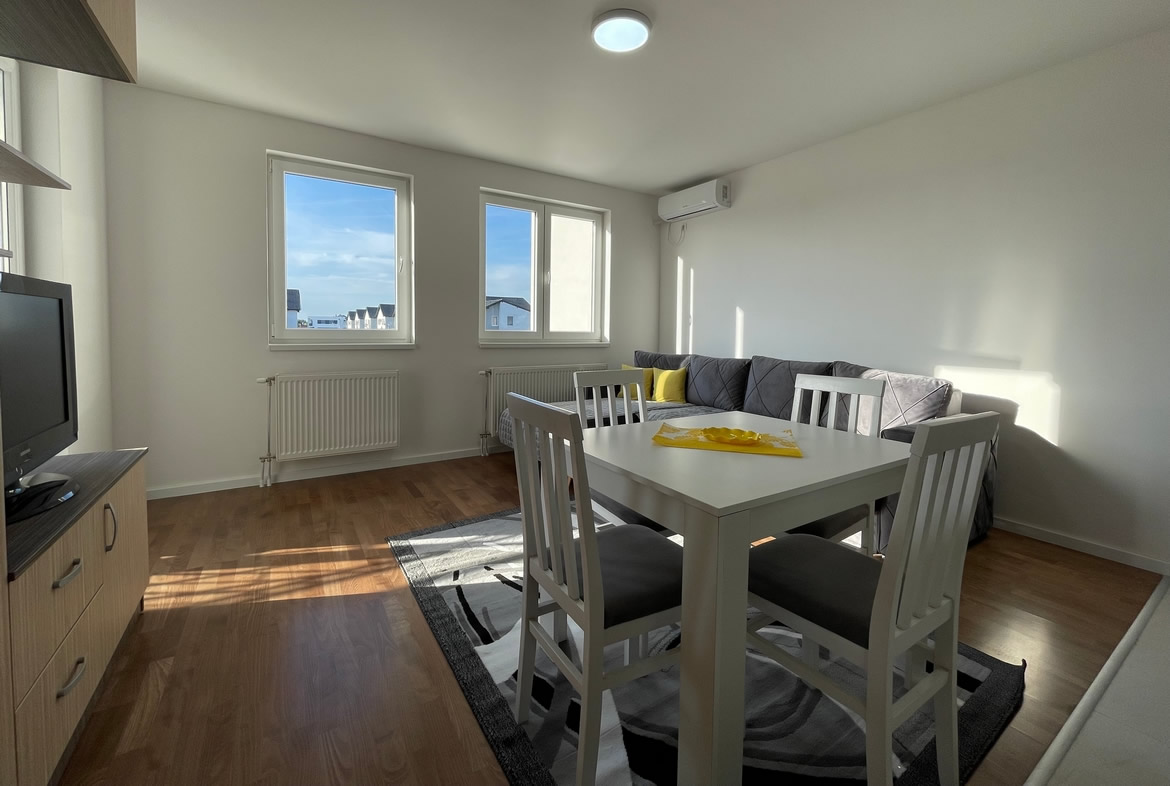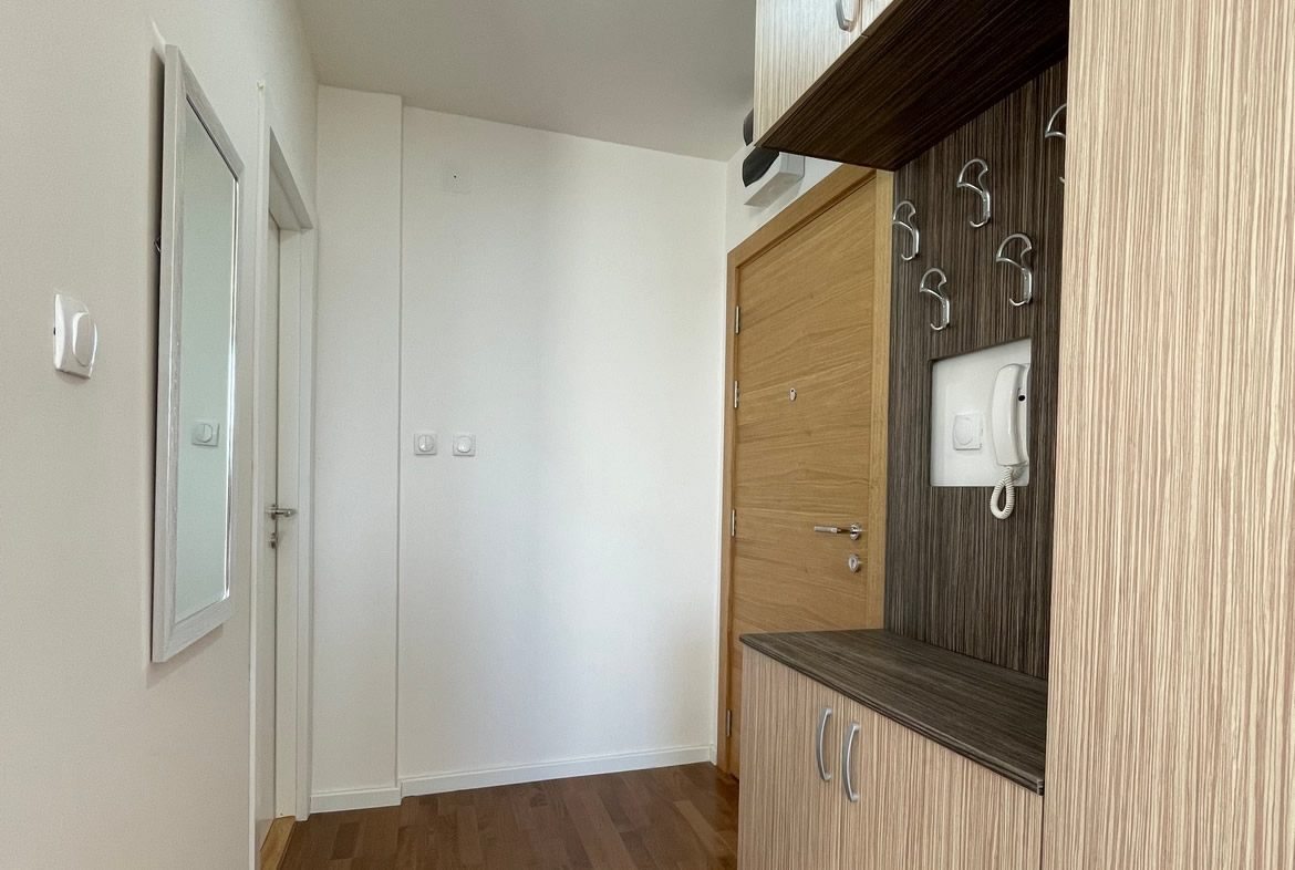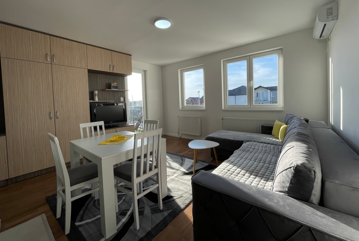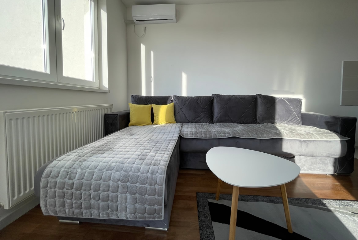 • Opremljenost: Namešteno – TV, klima, veš mašina, kuhinjski elementi, frižider, rerna, šporet, ležaj, plakar